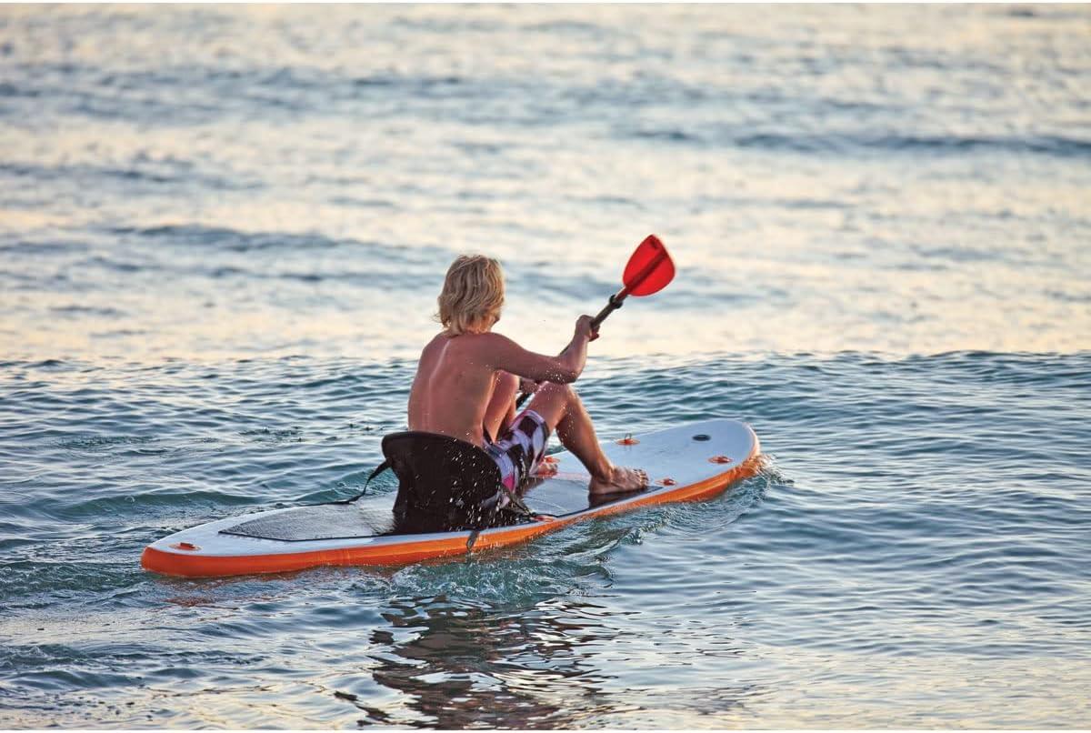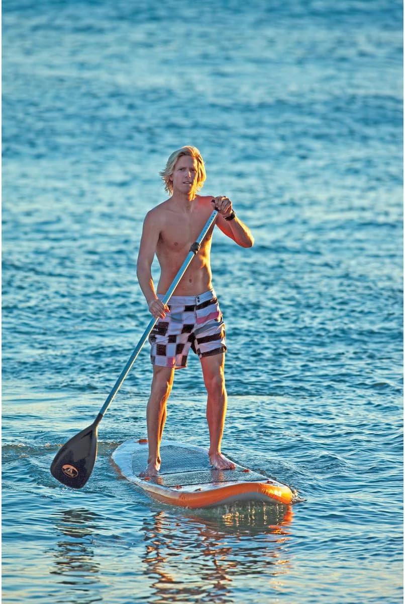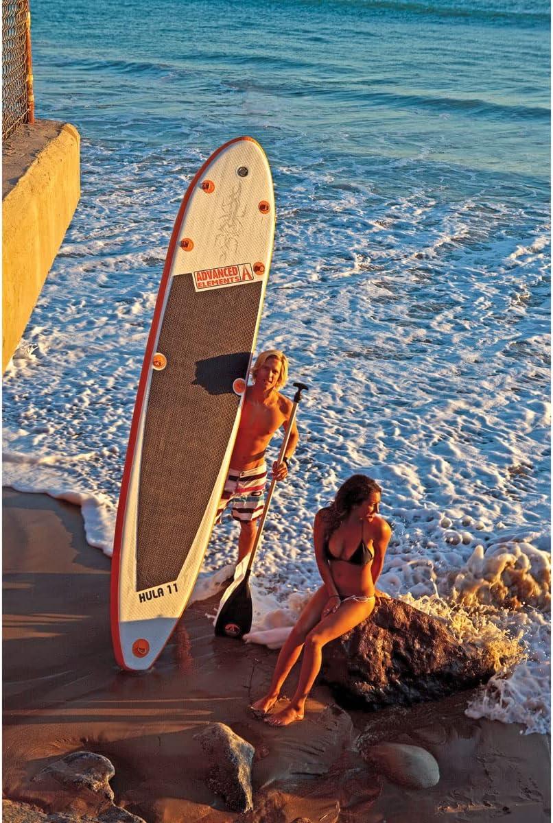 With the Advanced Elements Hula 11, you can transport your board to the water — in a duffel bag in the trunk of your car — inflate it on the shore, and be on the water in minutes. The board is constructed of high-pressure, drop-stitched material and a double layer of rugged PVC tarpaulin for stiff performance and durability on the water. It can be used for standup paddling, surfing, or kayaking. On the deck, there's a large foam traction pad, seven D-rings for gear tie-down, an optional kayak seat attachment, and leash attachment.