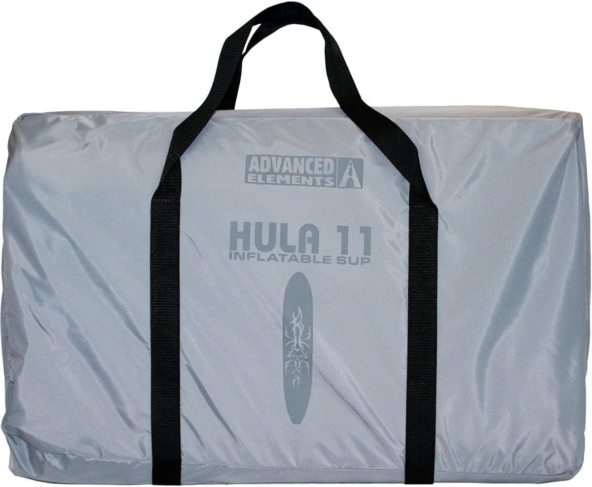 Unfold, inflate, and hit the water in a matter of minutes! The Hula 11 is a great recreational board designed to perform best on lakes, slow moving rivers, and tidal areas. High-pressure, drop-stitched construction and a double layer of heavy-duty PVC make for performance challenging rigid boards, and superior durability against the bumps and dings of life. A foam traction pad gives you comfortable and secure footing, while removable fins keep you on course. Multiple d-ring attachment points offer plenty of option for strapping in gear, and also make it easy to attach a kayak seat. Weighing in at just 23 lbs, the Hula 11 can be deflated and rolled up whenever you want and easily stowed away. The included pump and travel bag give you everything you need to on the water today. Ideal for cruising, surfing, or kayaking, the new Hula 11 Inflatable SUP is an extremely fun paddle board that will keep you smiling!